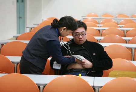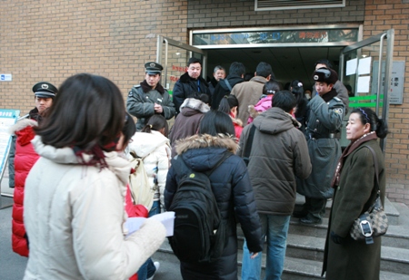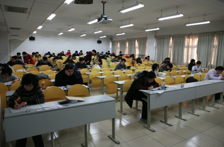 1月10日,2009年碩士研究生入學考試正式開始,我校阜成路考點一早就開始了緊張而有序地工作,所有工作人員都在開考前40分鐘就位;校領導親自到各考場現場指導工作。研究生部在考場周圍掛橫幅、放置溫馨提示牌、考場分布示意圖等,還安排了志愿者咨詢服務崗,同時為考生準備了巧克力、熱水,并為考生提供中午休息的場所。相關部門也積極展開工作給考生營造了一個方便、周到、輕松的考試環境。考生自覺遵守考場紀律,積極配合工作人員確保安全有序。