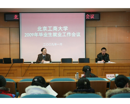 1月14日,學(xué)校在阜成路校區(qū)召開2009年畢業(yè)生就業(yè)工作會議。校長譚向勇和北京市教委學(xué)生處處長楊文茹出席會議并作重要講話。黨委副書記盧思鋒作了題為《堅(jiān)定信心 抓住機(jī)遇 迎接挑戰(zhàn)---努力做好學(xué)校2009年畢業(yè)生就業(yè)工作》主題報告。副校長李朝鮮主持會議。