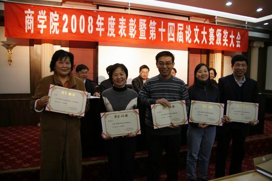 2009年1月17日下午,商學院在平谷教工會議中心舉行08年綜合表彰暨第14屆論文競賽頒獎大會。原北京商學院副校長李殿富、北京工商大學副校長謝志華、李朝鮮、張耘,教務處副處長祝鈞參加此次大會。大會由北京工商大學商學院院長楊有紅教授主持。