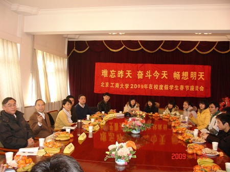 1月25日,學校在阜成路校區(qū)舉行一年一度的“難忘昨天、奮斗今天、暢想明天----在校度假學生春節(jié)座談會”。黨委副書記盧思鋒出席并講話。學生處處長呂素香主持。學生處、后勤處、宣傳部、團委負責人及部分院系黨總支副書記和各院系留校度假學生代表歡聚一堂,辭舊迎新,喜迎新春佳節(jié),展望美好未來。