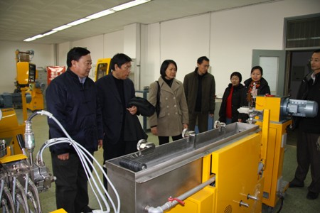 會談后,在塑料所(材料系)主任兼所長許國志和班子成員的陪同下,張校長參觀了材料系(塑料所)的實驗室,進一步了解材料系、塑料所的歷史及發展情況,聽取了科技人員對科研項目和實驗設備等方面的介紹。在標準與檢測實驗室、聚合物基礎性能實驗室及結構與性能表征實驗室,張校長詳細詢問了各個實驗室的建立發展和運行情況,并對所取得的科研成果、實驗室的建設等稱贊不已。張副校長充分肯定了材料系(塑料所)這種產學研相結合的辦學模式和成果,而且特別指出,在同類學科中,該學科行業背景突出,特點鮮明,應該繼續發揮行業資源優勢,在學科建設方面取得更大成績。張副校長還針對塑料所的發展實際,就進一步引進人才、爭取資金支持等方面給予了建設性意見。