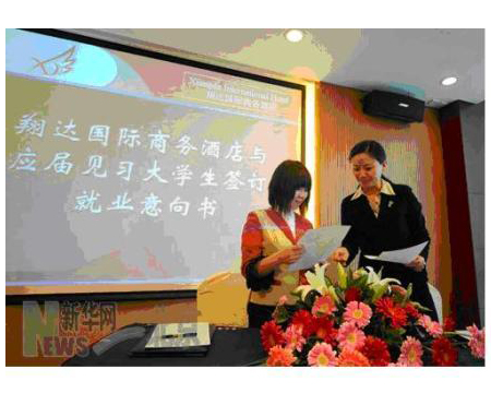 2月9日,該見習活動圓滿結束,翔達國際商務酒店給見習期間表現優異的我校8名見習生發放了見習證明和榮譽員工證書,并與大四學生晏菊、王東清達成聘用意向,簽訂了就業意向書。