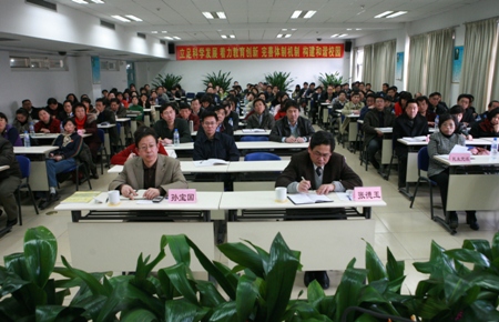 黨委書記孫堯東做總結(jié)講話。孫堯東同志強調(diào)指出,這次會議要起到統(tǒng)一思想,振奮精神,開拓進取,狠抓落實的作用。他希望各級干部和教職員工,一要不斷增強大局意識和責任感;二要不斷增強執(zhí)行和創(chuàng)新的能力;三要不斷增強改革和開放的能力;四要不斷增強發(fā)揚民主和凝聚人心的能力。孫堯東同志指出,學校的發(fā)展已經(jīng)進入一個關(guān)鍵階段,能否實現(xiàn)我們的既定目標,能否實現(xiàn)較高質(zhì)量較快速度的發(fā)展,能否建成一所高水平的、負責任的、讓人民滿意的大學,需要幾代人的不懈努力,但是今年是一個關(guān)鍵點。我們承擔著奠定基礎(chǔ)、承上啟下、開辟新的發(fā)展道路的使命和責任,我們一定不辜負黨和政府的重托,不辜負師生員工的熱切期盼,一定要刻苦學習、勤奮工作,團結(jié)協(xié)作、開拓創(chuàng)新,廉潔自律、無私奉獻,以最優(yōu)異的工作成績迎接我校第一屆黨的代表大會的召開,向共和國60年慶典獻禮!向?qū)W校60年華誕獻禮!