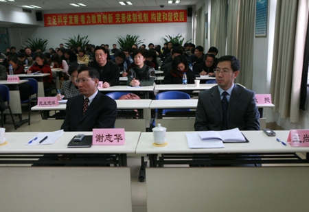 全體中層干部,教授、教代會、工會代表,民主黨派負責人,學生代表等150余人參加了會議。