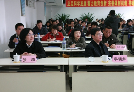 市教工委聯(lián)絡(luò)員畢孔彰在講話中,對我校2008年取得的成績表示贊賞,對學校2009年工作部署表示肯定。他希望我校抓住學習貫徹落實科學發(fā)展觀的機遇,找準差距,規(guī)劃好學校的未來。