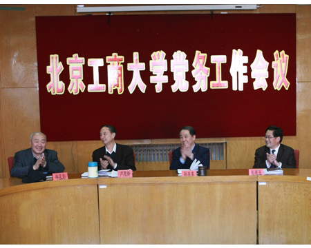 孫堯東同志重點介紹了第17次全國高校黨建工作會議充分肯定了改革開放30年來我國高等教育取得的成就、特別是高校黨的建設6條寶貴經驗和全國和北京市高校黨的建設工作會議對做好2009年高校黨的建設工作提出的7條要求等有關精神,對做好今年學校黨建工作需要注意的問題進行了梳理和強調。他指出,做好今年學校黨建工作第一要堅持一條主線——以加強黨的執政能力和先進性建設為主線。第二要突出一個重點——開展深入學習實踐科學發展觀活動。第三要抓好“六個結合”——要把學習實踐科學發展觀活動與開好黨代會結合起來,與干部崗位聘任結合起來,與做好七.一黨內評選表彰先進活動結合起來,與圓滿完成今年工作任務結合起來,與以改革創新精神加強黨的建設結合起來,與創造安全穩定和諧優美校園結合起來。第四要務求實效——要在理論武裝黨員和師生員工、加強各類培訓、堅守意識形態領域主導權上取得實效;要在加強干部的黨性修養、弘揚黨的優良作風、密切與師生員工的聯系上取得實效;要在發揚黨內民主、提升服務能力、完善和執行各項制度上取得實效;要在營造良好學術氛圍、完善規章制度、嚴肅政治紀律上取得實效;要在選配好黨務工作和學生工作隊伍、完善體制機制、落實待遇上取得實效;要在堅持人才強校上取得實效。一定要大力營造尊重知識、尊重人才、尊重勞動、尊重創造的濃厚氛圍,讓人才心情愉快、無憂無慮、充分發揮聰明才智。第五要加強指導——通過調查研究、交流培訓、走出去請進來等多種方式,促進干部群眾轉變觀念、開闊視野、深化改革、創新發展。面對今年學校黨建工作任務多、時間緊、要求高的實際情況,他號召全校黨員干部一定要以對黨的事業高度負責的精神,以對教育事業和學校發展高度負責的精神,以對黨員和師生員工高度負責的精神,全心全意、聚精會神、全力以赴做好今年黨的建設工作,不斷促進學校科學發展,不斷提高黨務工作者的能力和水平,不斷提高黨的建設和思想政治工作水平。