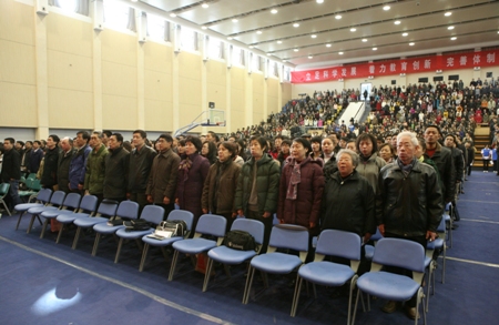 北京市委教育工委副書記、市教委主任劉利民,北京市委深入學習實踐科學發展觀活動指導檢查組第20小組組長張來芬,副組長鄧峰,組員馬景娜、王朋信、魏凱,北京市教委辦公室主任張永凱,北京市教工委聯絡員畢孔彰,校領導孫堯東、譚向勇、盧思鋒、張德玉、孫寶國、謝志華、李朝鮮、王尚忠、張耘,全體在職教職工黨員,中層干部、學生黨員、離退休黨員代表,民主黨派基層組織負責人等2000余人參加了大會。大會由學校深入學習實踐科學發展觀活動領導小組副組長、黨委副書記兼紀委書記張德玉同志主持。