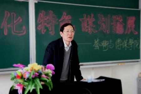 譚向勇校長向教師們描述了學(xué)校近期各項(xiàng)工作的部署,分享了已取得的實(shí)際進(jìn)展,闡明了學(xué)校對教師的職業(yè)發(fā)展、生活狀況、工作條件等諸領(lǐng)域的關(guān)心和努力。他強(qiáng)調(diào)了學(xué)科、科研工作的重要性和緊迫性,要求學(xué)院的師資隊(duì)伍建設(shè)、專業(yè)建設(shè)都要密切結(jié)合學(xué)科建設(shè)、科研建設(shè),結(jié)合學(xué)校的學(xué)科、科研規(guī)劃做好學(xué)院的學(xué)科、科研發(fā)展目標(biāo),發(fā)揮原有優(yōu)勢,圍繞學(xué)校重點(diǎn)學(xué)科發(fā)展形成自身的優(yōu)勢學(xué)科,表示學(xué)校支持藝術(shù)與傳媒學(xué)院教師積極開展科學(xué)研究。他要求教師、教輔人員不斷提升科研能力和水平,高級職稱教師在學(xué)校的教學(xué)科研型大學(xué)建設(shè)過程中發(fā)揮應(yīng)有作用、承擔(dān)應(yīng)盡職責(zé),鼓勵藝術(shù)類教師積極從事、開拓多元多樣科研事業(yè)。