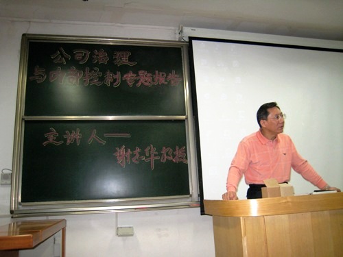 3月4日下午,應商學院的邀請,副校長謝志華教授在教三樓舉行學術(shù)報告會,該報告會的主題是公司治理與內(nèi)部控制。商學院全體教職工參加了此次報告會。