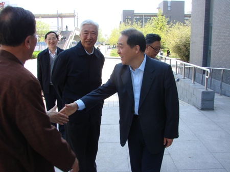 4月15日,陽光和煦,春意融融。在學校深入學習實踐活動逐步深入之際,在學校第一次黨代會召開前夕,學校老領導王義端、韓貴峰、肖景山、丁士堃、李殿富、劉秀生、劉守恒、王仲德、陳殿華應邀到良鄉校區參觀考察。校領導孫堯東、譚向勇、張德玉、王尚忠與老領導交換意見,共論發展。