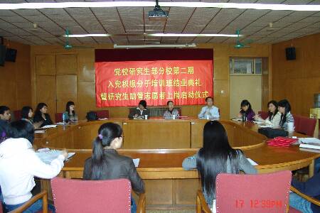 近日,研究生部在阜成路校區(qū)舉行研究生助管志愿者工作啟動儀式。研究生部黨總支書記董竹娟、副書記熊慧參加會議。共有25名黨校畢業(yè)學(xué)員和26名首次上崗的研究生助管志愿者到會。