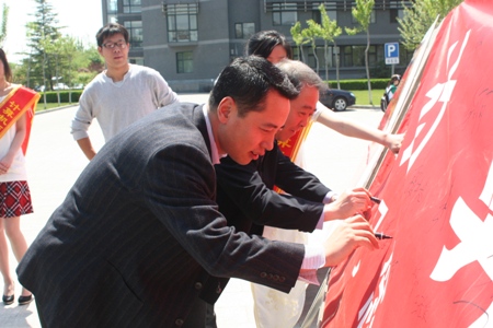 黨委書記孫堯東代表學校對計算機與信息工程學院的此項活動給予肯定并預(yù)祝此次主題系列活動圓滿成功。之后,出席此次啟動儀式的各領(lǐng)導(dǎo)及教師、輔導(dǎo)員分別在簽名橫幅上留下自己的姓名,以示對本次活動的支持與鼓勵。