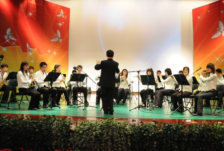 在中國人民解放軍軍樂團紀占茂大校的指揮下,校學生管樂團首先為大家帶來了三首激昂的《匈牙利》、《康康》、《龍舌蘭》合奏曲。和著臺下同學拍手的動感節奏,從臺上躍出的樂曲仿佛有了生命般在同學們之間自由穿梭。北京理工大學為同學們帶來的民樂合奏《賽馬》仿佛讓同學們置身于碧草藍天的大草原上,感受著自由帶來的奔放。