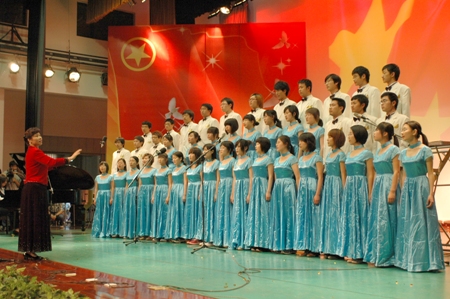 活力激蕩,青春飛揚。一群活力四射的青年用自己甜美的嗓音向我們展現出青春的激情。《愛,因為在心中》,這首歌曲不但表達出了計信學院及手語社同學們的心聲,更將所有同學關注災區、心系重建的心情體現得淋漓盡致。接下來由學校十佳歌手及合唱團演唱的歌曲串唱充滿了時代的氣息;799樂隊的閃亮登場個性十足,他們在臺上盡情揮灑著青年的活力與時尚;中央音樂學院的韓均宇同學與中國音樂學院的