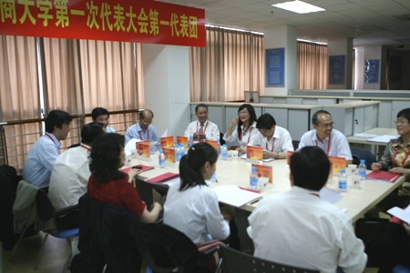 學校第一次黨代會上午的大會結束后,各代表團隨即開始了分團會議,審議討論黨委、紀委工作報告。