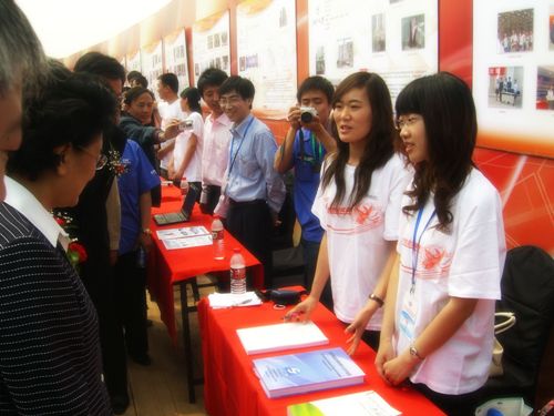 5月16日上午,2009全國(guó)科技活動(dòng)周暨北京科技周開(kāi)幕式在北車集團(tuán)二七機(jī)車廠舉行,今年科技活動(dòng)周繼續(xù)以“攜手建設(shè)創(chuàng)新型國(guó)家”為主題。中央政治局委員、國(guó)務(wù)委員劉延?xùn)|,中國(guó)科技部部長(zhǎng)萬(wàn)鋼,中國(guó)科技部黨組書記、副部長(zhǎng)李學(xué)勇,中國(guó)科學(xué)技術(shù)協(xié)會(huì)副主席、書記處第一書記鄧楠等領(lǐng)導(dǎo)出席了開(kāi)幕式并參觀了大學(xué)生創(chuàng)新創(chuàng)業(yè)成果展。我校物流管理專業(yè)學(xué)生杜巍、張屹然代表學(xué)校參加開(kāi)幕式大學(xué)生創(chuàng)新創(chuàng)業(yè)成果展。