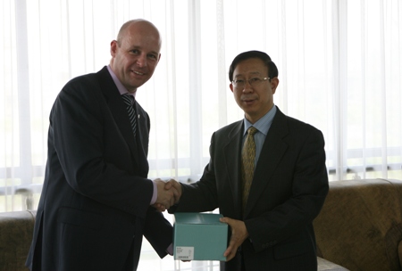 5月25日, 孫副校長與來校訪問的愛爾蘭都柏林大學(xué)常務(wù)副校長Philip Nolan博士、國際合作部主任Erik Lithander博士、中國研究院院長王黎明教授及中國研究院負(fù)責(zé)中國項(xiàng)目教師Francis Kan親切會面,整個(gè)會談富有實(shí)效,為兩校開展全面合作設(shè)計(jì)了總體思路和明確了方向。