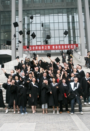 即使在金融危機的陰霾下,但是更多的同學都很樂觀和輕松的,同時也對自己的未來充滿信心。經濟05的喬同學拿著一把羽毛扇子,悠然自得的樣還頗有諸葛臥龍的神韻,他告訴記者:“為什么拿著一個羽扇呢?這是因為學校給了我智慧和知識,即使天空陰暗,我們的內心也充滿了陽光,充滿了自信。”信管052班的王松是我校兩屆學生會主席。他找工作也曾碰過壁,經過努力,最后成功簽約首鋼。“努力就會有回報”,畢業典禮了他將這句話送給學弟學妹們。王松是我校向社會輸送的優秀學子之一,他也給大家講著一個道理,無論在什么樣的就業環境之下,只要是優秀的,沒有找不到工作的。