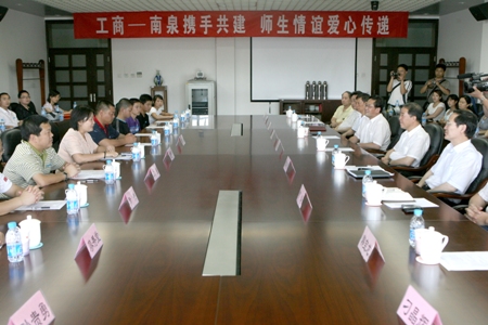 沈柳鶯副局長代表什邡市教育系統向我校師生員工表示由衷感謝。她說,工商大學師生員工采取各種形式支援災區、奉獻愛心,為南泉中學捐款31萬余元購置教學設施設備,開展“每天節約一元錢,資助災區好少年”的“一幫一”助學活動,邀請南泉中學師生到北京參觀考察等,使南泉師生深受感動,也備受鼓舞。她希望南泉師生將此次北京之行的收獲,將工商大學嚴謹、務實的工作作風帶回南泉,在9月份搬入新建成的校舍后努力工作、發奮學習,以報答工商大學全體教職工的關愛和祖國人民的支持。