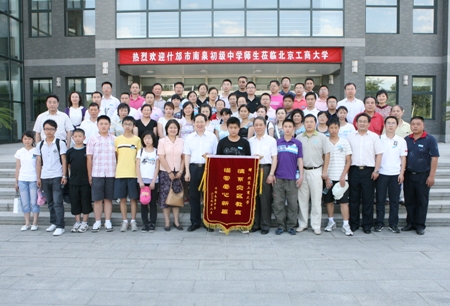 譚向勇校長代表學校對南泉中學師生一行的到來表示熱烈的歡迎!他指出,汶川大地震發生后,學校廣大師生一直心系災區人民,并被災區人民堅強、勇敢、積極、樂觀的精神所感動。此次借北京市對口支援什邡市之機,學校和南泉初級中學建立了共建合作關系。學校真心希望能夠為災區人民特別是南泉中學師生做些事情,同時將盡最大的努力支持南泉中學的重建。譚校長還向南泉師生簡要介紹了學校的基本情況。