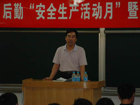 后勤黨總支書記龐春生對后勤安全工作提出了具體要求,他指出:今年是建國60年大慶,后勤要把安全工作放在第一位。夏季來臨,尤其臨近期末考試、放假,后勤飲食、公寓、醫院、運輸、物業、維修等部門,要根據各自的工作性質和特點,采取有效安全措施,切實增強防范意識,把安全生產落到實處。
