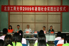 7月13日上午十點,我校2009年暑期“十鄉(xiāng)百村千人行、縱觀農(nóng)村六十年”房山社會實踐出征儀式在良鄉(xiāng)校區(qū)學(xué)生活動中心多功能廳舉行,參加人員有校黨委副書記盧思鋒、化學(xué)與環(huán)境工程學(xué)院黨總支副書記何猛、外國語學(xué)院黨總支副書記楊秀萍、材料科學(xué)與工程系黨總支副書記馬春暉以及實踐團全體成員。團委書記呂良主持出征儀式。