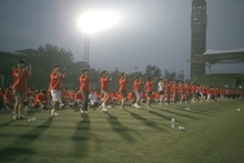 據悉,這些“小教員”犧牲了自己的休息時間,于20日下午兩點就到達了學校文體館,接受老師的培訓,培訓一直持續到下午四點。期間,“小教員”們一絲不茍地向老師學習,不放過其中的每一個細節, 力求將動作掌握到最好。“今天的訓練真的很累,但也讓我有了第一次當教官的感覺,加上同學們積極配合,這次經歷很開心。”“小教員”之一,來自新聞071的田暢笑著說。