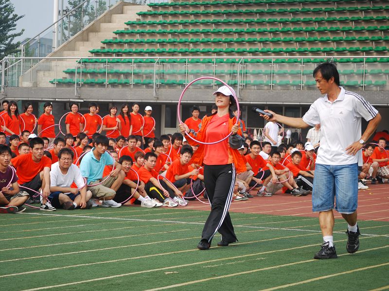 很多老師都是同學們所熟悉的。平時,他們和同學一起打球、一起流汗、一起歡笑。訓練中,他們也和大家一起流汗,不同的是為了圓滿完成國慶任務,他們更加嚴肅、不茍言笑。從動作到口號、從細節到整體,任何一個不規范的地方他們都不放過。為了保證隊伍做到橫、豎、斜“三條線”,“稍息立正、前后對正、左右看齊”成了他們的口頭語;“雙手食指貼緊褲線,拇指放在食指第二關節”是他們每天重復次數最高的話。他們一遍又一遍不厭其煩的提醒著同學們,只愿在最短訓練內取得最佳效果。