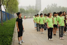 每天早上,范紅松都早早的起床,簡單的洗漱整理之后就來到訓練場上等待著藝術與傳媒學院的同學們,開始一天的訓練工作。雖然國慶活動訓練內容很簡單,只是要求大家動作統一、隊列整齊,但是一旦訓練起來卻不是那么容易做到的,因此在訓練中有些同學出現了厭倦的情緒。面對這樣的問題,范紅松總是鼓勵對大家說,這是鍛練同學們意志的時候,只要我們堅持住,我們就是戰勝了自己。在訓練中,范紅松對同學們的要求很高,從每個人步幅、步速到排面的整體效果;從每個人的動作細節到隊伍的整體效果,范紅松都不放松要求。在加入手持花環的動作之后,她更是嚴格對待,為了一個動作經常是親自示范并糾正同學們的錯誤。