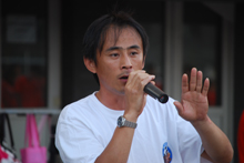一盒打開的金嗓子喉寶,一個泡著胖大海的杯子,這是記者在劉建宿舍看到的。“您累嗎?”記者問出了忍住許久的問題。以為會聽到一些豪言壯語的記者卻只得到了一聲略顯疲憊、有些沙啞的回答:“累。”“那您的壓力大嗎?”,記者又問。“我沒有壓力,我相信我有實力把我的學生帶好,和我的學生配合好。”這次記者得到了一個充滿信心的回答。 “麥霸”是劉建老師對自己開玩笑的稱呼。不過在隨后對計信學院同學的采訪中,記者卻了解到了這個稱呼更深的含義。原來,為了隨時調整隊伍人員,劉建老師會跟隨每一列的同學進行隊伍的行進和調整。而喊口號的任務自然的落在他的身上。一遍遍的走,一聲聲的喊,走出了整齊的隊列,喊出了威武的氣勢。許多同學都叫劉建 “訓練場上最辛苦的人”。因此訓練間歇會有許多學生走到劉建老師身邊提醒他注意身體,多休息,讓劉建老師很受感動。