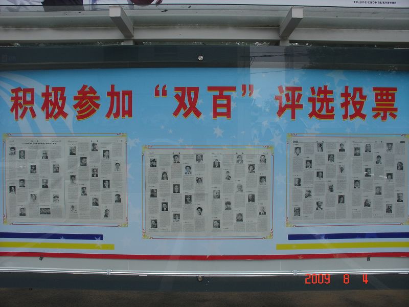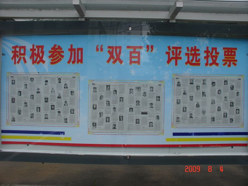 為慶祝新中國成立60周年,高揚愛國主義偉大旗幟,中宣部、中組部等11部門聯合組織開展“100位為新中國成立作出突出貢獻的英雄模范人物”和“100位新中國成立以來感動中國人物”評選活動。日前,全國“雙百”評選活動辦公室確定并公布了兩類候選人選共300名(各150名)。為了使我校廣大師生廣泛了解、積極參與“雙百”投票活動,宣傳部專門在良鄉校區和阜成路校區設置了宣傳欄,張貼候選人物名單和事跡介紹,歡迎廣大黨員干部、師生員工前往閱讀、了解,并積極參與到投票評選中來。