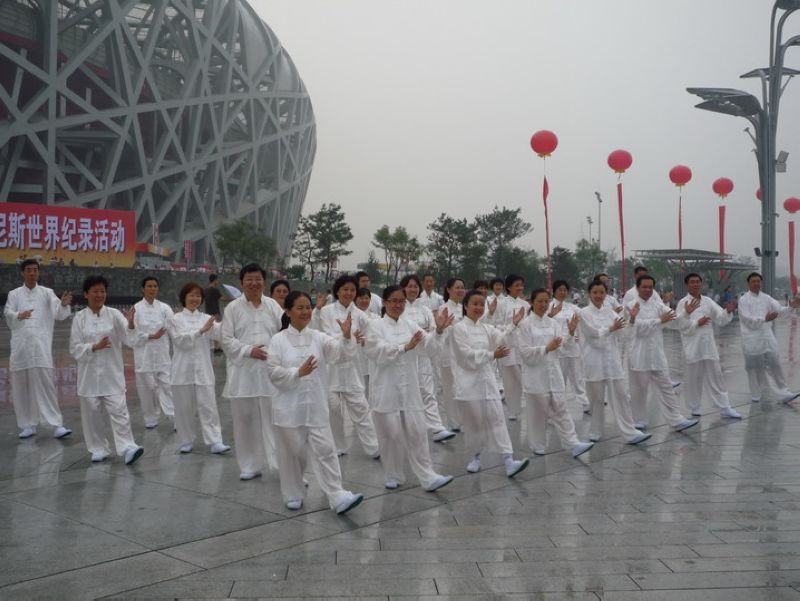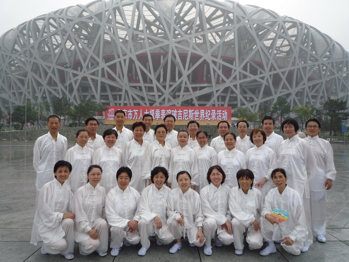 8月8日晨,雨中,我校教職工太極拳表演隊在北京奧林匹克公園參加了北京萬人太極拳表演破吉尼斯世界紀(jì)錄活動。此次表演以33996人的成功參加,打破了2004年4月在河南洛陽創(chuàng)造的30648人的集體太極拳吉尼斯世界紀(jì)錄。