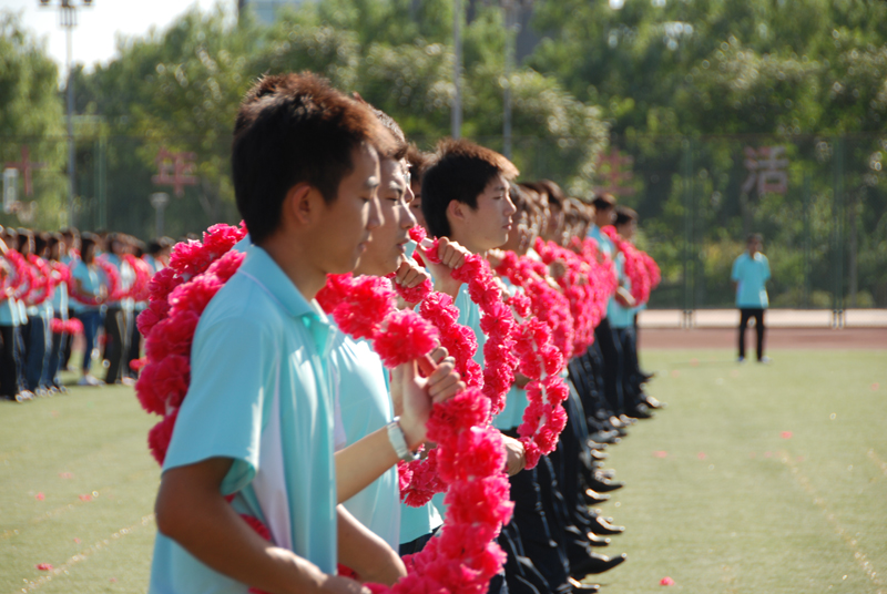 9月12日,“秋老虎”發威,早晨八點已是艷陽高照。8:05,身著淡藍色運動服、手持粉紅花環的國慶方隊參訓人員準時在操場集合,吹響了沖刺階段訓練的號角。