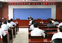 黨委書(shū)記孫堯東主持學(xué)習(xí)并講話,校領(lǐng)導(dǎo)譚向勇、盧思鋒、張德玉、謝志華、張?jiān)懦鱿藚R報(bào)會(huì)。學(xué)校黨委理論中心組成員,各院(系、部)黨政正職,各職能部門負(fù)責(zé)人,學(xué)校赴英骨干教師培訓(xùn)團(tuán)、赴澳管理干部培訓(xùn)團(tuán)、赴加學(xué)科帶頭人培訓(xùn)團(tuán)學(xué)員等100余人參加了學(xué)習(xí)會(huì)。