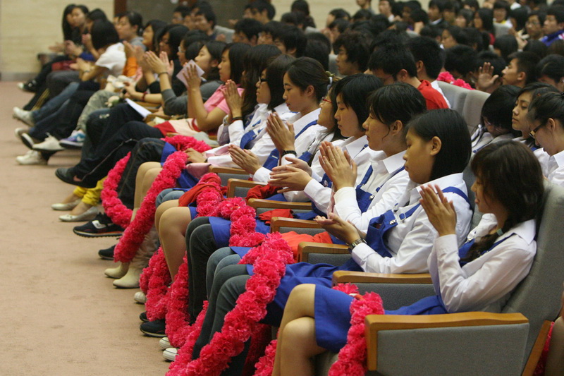 在計算機與信息工程學院和經濟學院師生參加的大會上,莊嚴的國歌聲使每個人心潮澎湃,學生代表的發言更是道出了每個參訓人員的心聲:祖國榮譽,高于一切!在藝傳學院和商學院的誓師會上,商學院的同學身穿正式演出服裝,手持花環,兩院院旗在會場兩側遙相輝映,仿佛是兩面鼓舞士氣的戰旗,整個會場洋溢著喜慶激昂的氣氛。在法學院、機械學院、合唱隊和廣場聯歡團的誓師大會上,氣氛十分熱烈,代表們的發言慷慨激昂,聽眾們的掌聲熱烈持久,反映出參訓師生激動的心情和必勝的信念。
