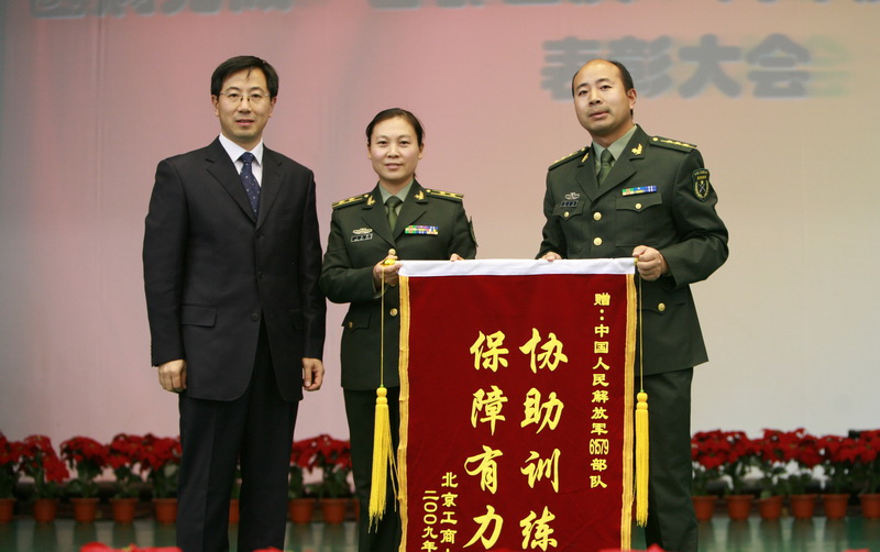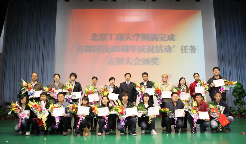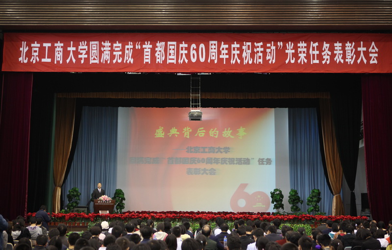 一百天的艱苦訓練,二百三十八步的完美表演,成就了69秒的輝煌。10月21日,以“盛典背后的故事”為主題,北京工商大學圓滿完成“首都國慶60周年慶祝活動”光榮任務表彰大會在良鄉(xiāng)校區(qū)文體館舉行。校領導孫堯東、李朝鮮、王尚忠出席了大會。黨委副書記盧思鋒主持了大會。
