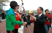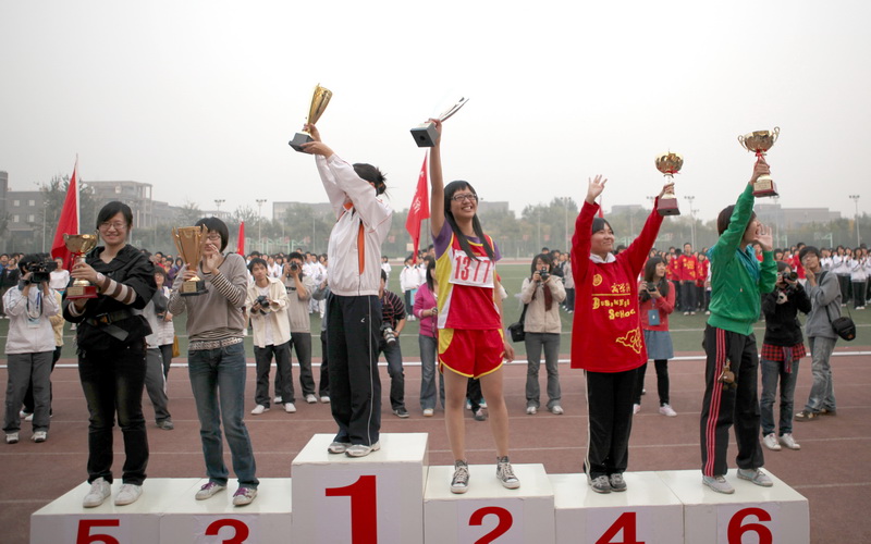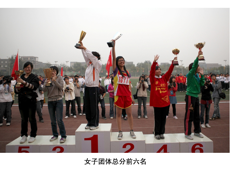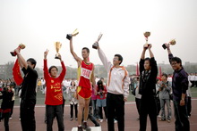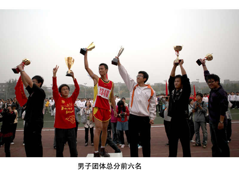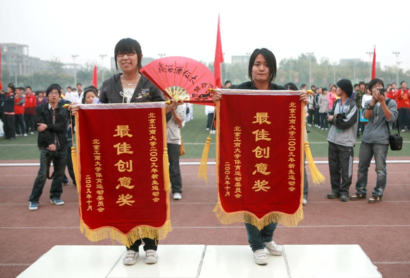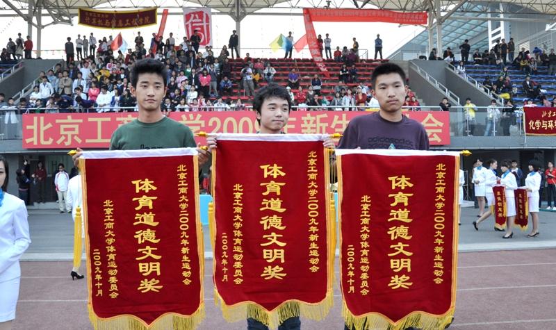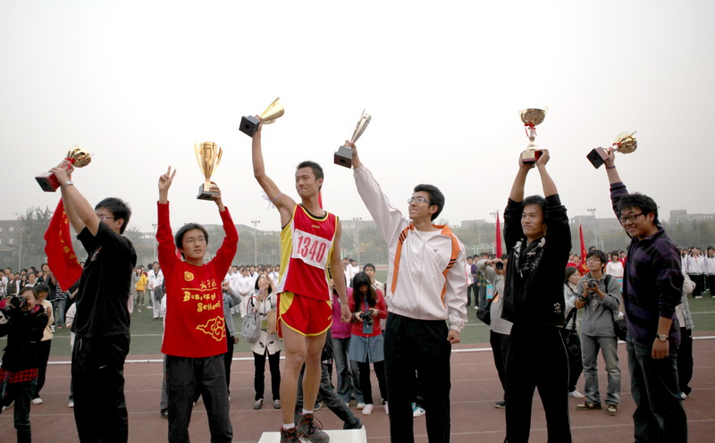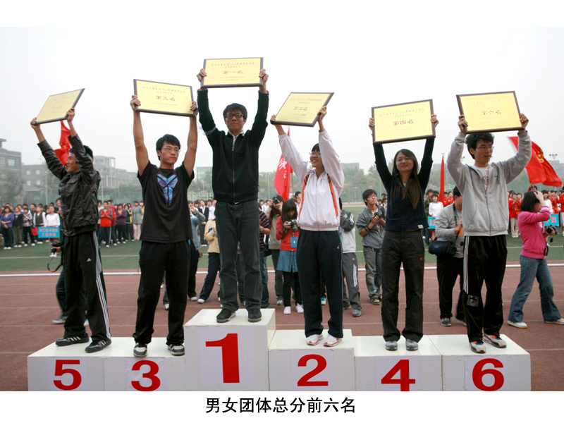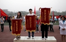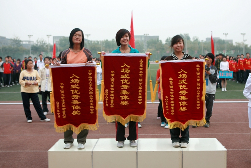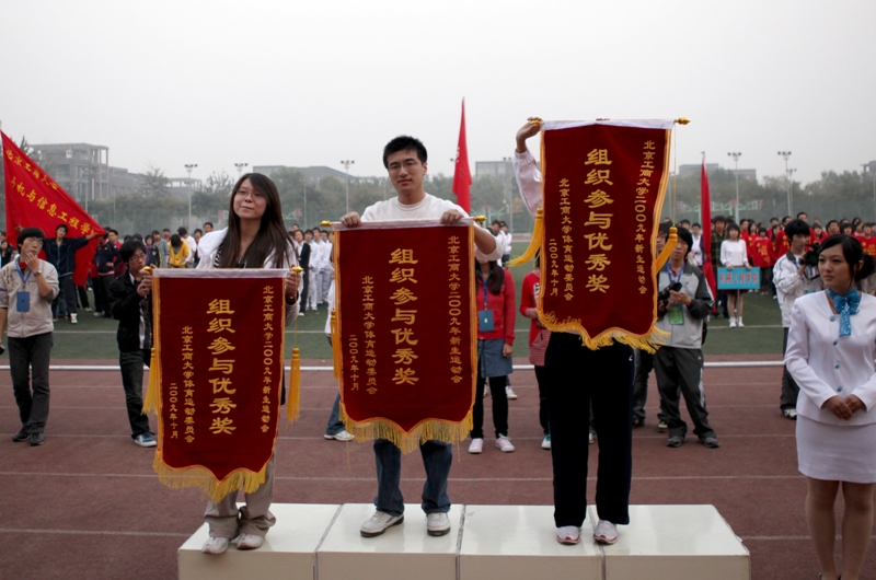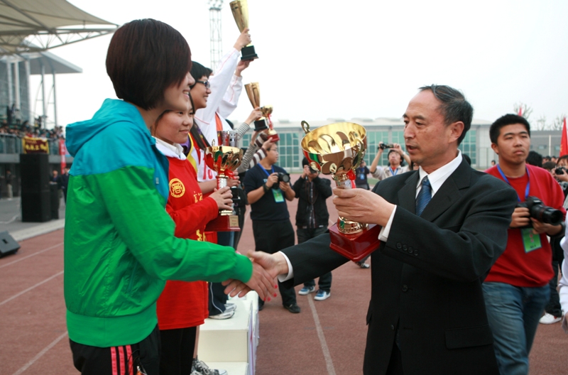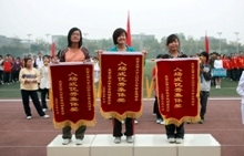 運動員列好了整齊的隊伍;獎杯、獎牌、錦旗等待著他們的主人;觀眾們也熱切地期待著比賽結果。下午4:30,我校良鄉校區的操場上,新生運動會閉幕式準時舉行。黨委副書記盧思鋒和各職能部門及院系負責人出席閉幕式。校辦主任吉濤主持閉幕式。 體育教學部王少華老師宣讀了女子團體總分、男子團體總分、男女團體總分前六名的院系。女子團體總分前六名分別是:嘉華學院、計算機與信息工程學院、經濟學院、商學院、化學與環境工程學院、藝術與傳媒學院。男子團體成績前六名是:計算機與信息工程學院、嘉華學院、商學院、機械學院、法學院、經濟學院。男女團體總分前六名是:計算機與信息工程學院、嘉華學院、商學院、經濟學院、機械學院、藝術與傳媒學院。 黨委宣傳部副部長袁小年宣讀了本次運動會集體獎獲獎名單。經濟學院、材料科學與工程系、外語學院獲體育道德文明獎;計算機與信息工程學院、商學院獲得最佳創意獎;化學與環境工程學院、研究生部、嘉華學院獲得組織參與優秀獎;機械工程學院、藝術與傳媒學院、法學院獲得入場式優秀獎。由經濟學院組成的紅旗方隊也受到了表揚。 隨著比賽結果的公布,觀眾席上的鼓聲、鑼聲、歡呼聲此起彼伏,在這片歡呼聲中,黨委副書記盧思鋒為取得女子團體總分前六名、男子團體總分前六名、男女團體前六名的院系頒獎。黨委宣傳部副部長袁小年為獲得體育道德文明獎的院系頒獎。體育與藝術教學部主任顧紅為獲得最佳創意獎的院系頒獎。保衛處處長頓勁松為獲得組織參與優秀獎的院系頒獎。團委書記呂良為獲得入場式優秀獎的院系頒獎。 黨委副書記盧思鋒在講話中,對本次新生運動會的圓滿成功表示祝賀,同時對為運動會的順利舉辦付出努力的各部門人員表示感謝。最后,他宣布2009年新生運動會勝利閉幕。