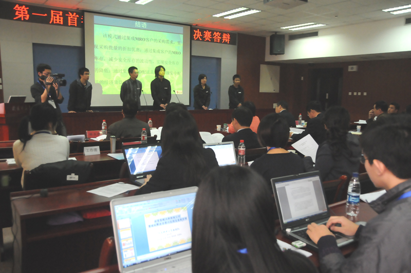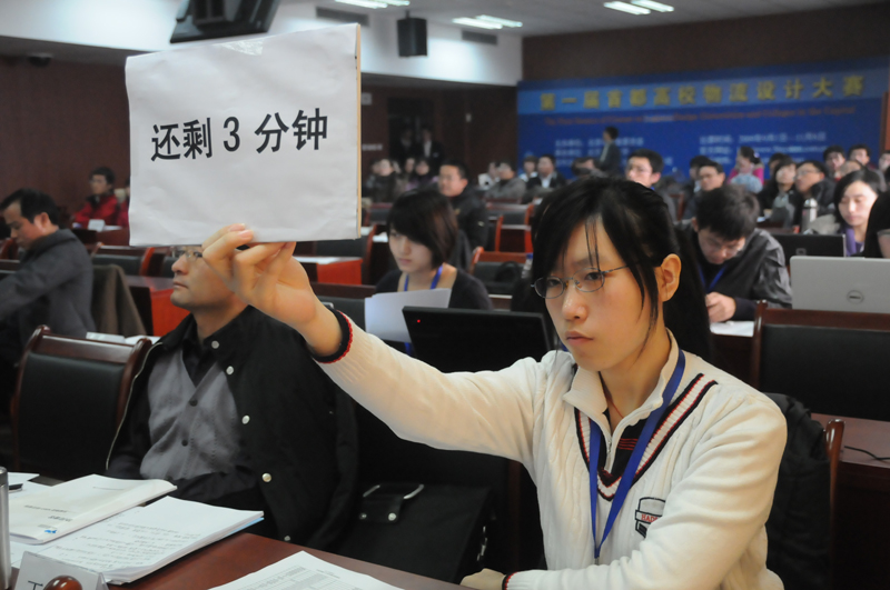 據此次大賽的秘書長、我校商學院物流管理系主任楊浩雄副教授介紹,首都高校物流設計大賽是由北京市教委發起的競賽項目,已被列入“北京市質量工程競賽項目”,以后每年舉辦一屆。首屆大賽是今年從3、4月份就開始籌備,6月份選定合作企業,并由我校對案例進行編寫。9月18日發出參賽邀請函,截止9月30日共收到北京市的20多所高校的51支參賽隊伍的報名,10月25日一共收到48個設計方案。通過預賽淘汰了50%。目前還剩下來自12所高校的24支隊伍通過決賽角逐一、二、三等獎,最終的結果將在答辯結束后揭曉。烽火工商,群雄逐鹿,誰能問鼎,且笑看風流。