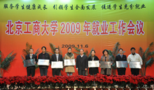 副校長謝志華在大會上宣讀了《2009年就業(yè)工作表彰決定》以及《關(guān)于成立北京工商大學(xué)‘畢業(yè)生就業(yè)之友聯(lián)盟’的決定》。