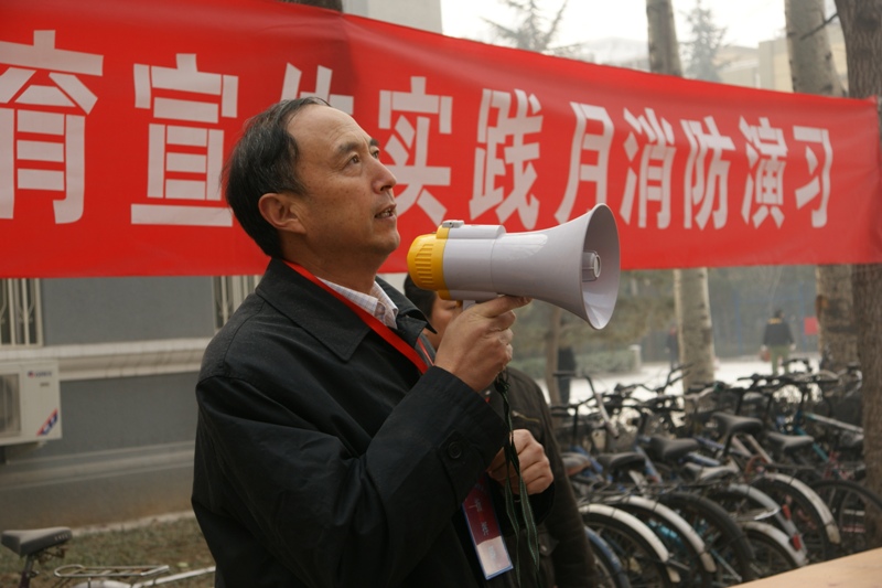 11月26日下午,為落實學校開展安全教育宣傳實踐月的活動方案,學校防火安全委員會在阜成路校區東區3號樓進行了大規模的消防演習活動。此次活動凸顯了安全實踐月提出的“加強師生員工安全意識,提高安全防范技能,構建平安校園、和諧校園”的主題,將安全教育宣傳實踐月活動推上高潮。校黨委副書記、學校安委會主任、消防演習總指揮盧思鋒到現場并講話;市委教工委保衛保密處王建輝副處長、市公安局文保處張錚警官作為嘉賓出席了演習現場。