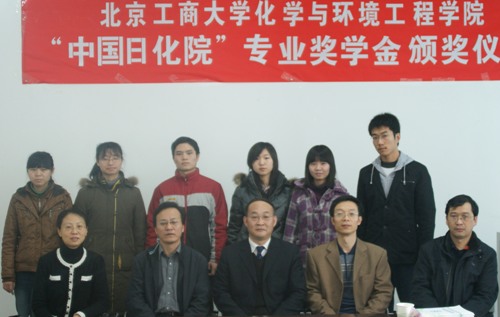 儀式上,徐寶財(cái)教授宣讀了北京工商大學(xué)化學(xué)與環(huán)境工程學(xué)院2008-2009年度“中國日化院”專業(yè)獎學(xué)金獲獎學(xué)生名單。中國日用化學(xué)工業(yè)研究院王萬緒院長、北京工商大學(xué)教務(wù)處副處長祝均教授分別為崔璐等6位獲獎同學(xué)頒發(fā)證書。