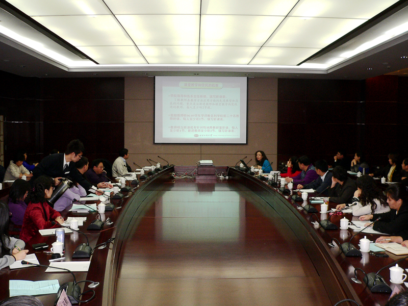 11月30日上午,學校召開北京工商大學2009—2010學年第一學期期中教學檢查總結(jié)會。各教學單位主管教學的副院長(副主任)、教學秘書和教務處領導、各辦公室主任參加了會議。會議聽取了各教學單位的期中檢查工作匯報。教務處周莉副處長主持會議,張曉堂處長做總結(jié)講話。李朝鮮副校長到會并講話,向各教學單位提出了今后開展教學檢查工作的五點要求。