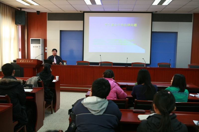 12 月 4日 下午,學校特別邀請勞動關系學院王向前教授在阜成路校區教三樓351會議室為大四學生和研究生做了“學生就業中的法律問題”專題講座。會議由學生處處長呂素香主持。