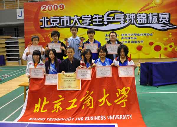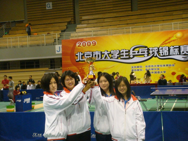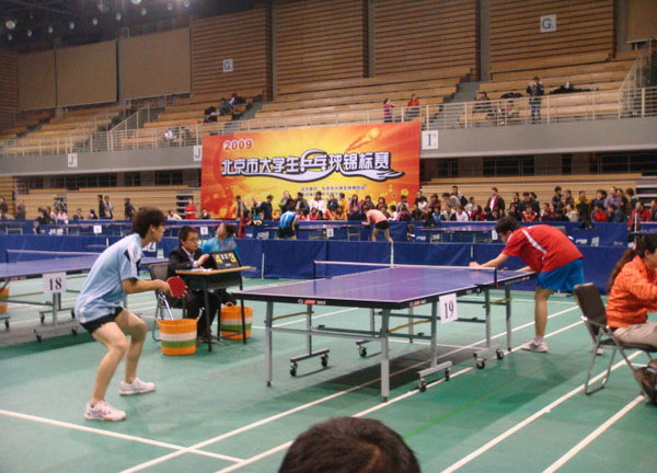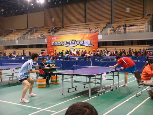 2009年北京市大學生乒乓球錦標賽于12月5日、6日在北京外國語大學舉行。這次比賽是由北京市大學生體育協會、大體協乒乓球分會主辦,北京外國語大學承辦。在為期2天的比賽期間,云集了北京外國語大學、清華大學、北京大學、中國人民大學等38所高校的300多名乒乓球精英參賽。