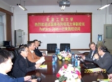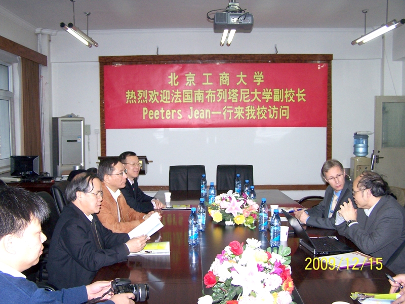 Jean Peeters副校長對謝志華副校長的熱情接待表示感謝,并表示雖然南布列塔尼大學(xué)是法國一所最年輕的大學(xué),學(xué)生規(guī)模與中國大學(xué)比也不大,目前只有近8000人,但追求質(zhì)量,在教學(xué)科研方面取得了很好的成績,在很多學(xué)科都有博士項目,而且和北京工商大學(xué)一樣也是一所多學(xué)科的綜合性大學(xué),希望雙方今后能夠在學(xué)生交流、教師交流方面開展交流和合作。南布列塔尼大學(xué)目前在北京已經(jīng)和北京大學(xué)、北京師范大學(xué)建立了合作伙伴關(guān)系。