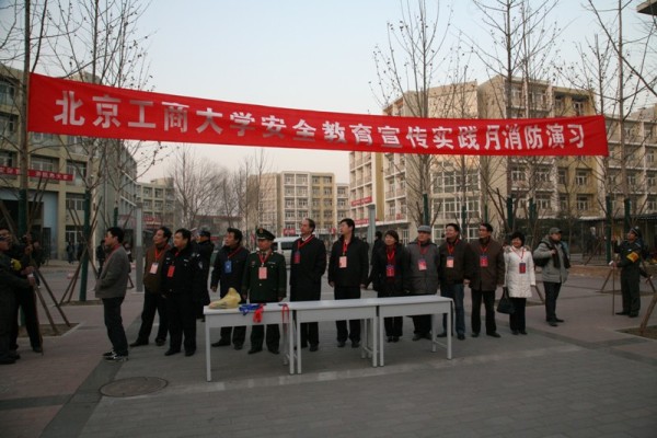 為落實學校關于開展安全教育宣傳實踐月的活動方案,加強師生員工安全意識,提高安全防范技能,構建平安校園、和諧校園,12月22日下午,學校防火安全委員會在良鄉校區五組團對大一新生和后勤人員組織了大規模的消防演習活動。校黨委副書記、學校安委會主任、消防演習總指揮盧思鋒和副校長呼文亮親臨現場;房山區消防支隊徐進團警官到達現場親臨指導;良鄉派出所警官王高虎和良鄉高教園區辦公室楊主任作為嘉賓出席了演習現場。