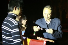 你相信有另外一個世界存在嗎?你想和另一個世界的人連線嗎?如果想,那么,請睜大雙眼,來李其倫的魔法世界,見證奇跡發生的一刻。一張桌子,一個鈴鐺,會有什么發生呢? “小時候,奶奶曾給我講故事……”李其倫神秘的語氣使全場頓時安靜下來, “我在另一個世界結識的朋友,如果你在,請給我一個回應,”只見原來在桌子上靜止不動的鈴鐺在毫無外力作用的情況下突然搖晃起來。面對此情此景,場上幾乎靜止了兩秒鐘,然后爆發出各種驚嘆的聲音,接著是長達10秒鐘的掌聲,將全場氣氛再次推向高潮。
