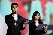 雖然只是在電視機前看過慶祝盛典,剛剛步入大學校門的09級新生擁有著同樣的愛國熱情。一曲動人的《我愛你,中國》唱出了對祖國母親的思戀與祝福。演唱者財務091的吳迪用高亢嘹亮的歌喉將歌曲的優美展現地淋漓盡致,她將歌曲的音調和觀眾的情緒同時帶向了高潮。