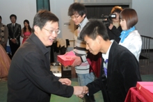假如在你的印象里“90后”仍是“非主流”、“頹靡一代”的代言人,那么,你“Out”了。由法學09級大一學生自編自演的集古箏、書法、舞蹈為一體的《雪山春曉》以獨特的藝術形式展現了中華民族古典文化的恒久魅力,也再次向觀眾展示了“90后”青春、勃發的精神面貌和優雅情懷。法學092的耿聞捷將古箏名曲《雪山春曉》演繹地淋漓盡致,而法學092的王奪同學更是健筆揮毫寫下了“舉國歡騰,同慶祖國六十華誕;辭舊迎新,喜迎學校甲子慶典”兩行大字。法學092段海霞等同學身著綠衣翩翩起舞,博得全場長久不息的掌聲。