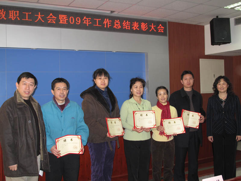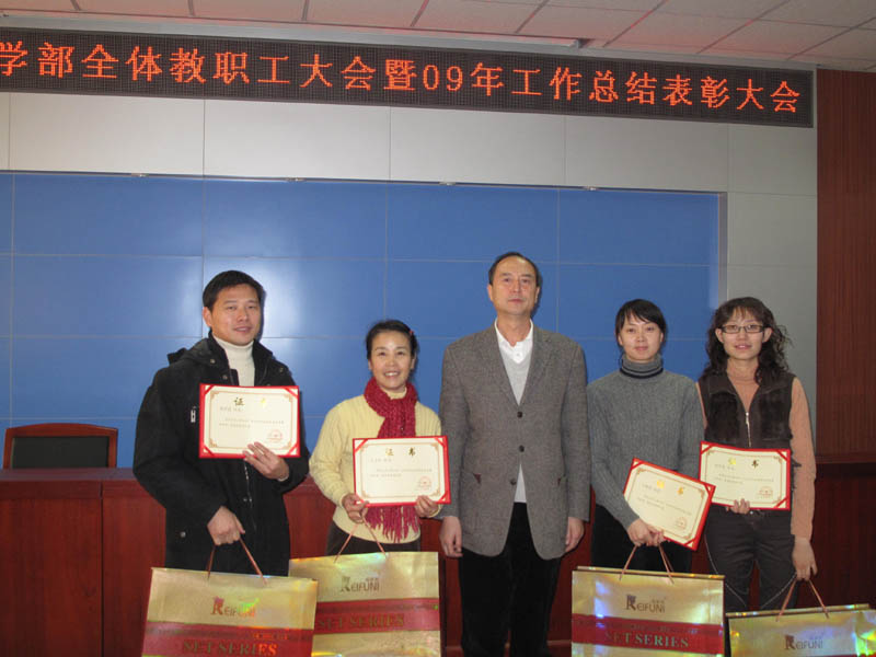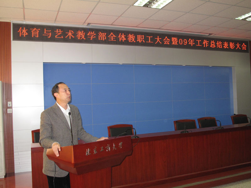 2010年體育與藝術(shù)教學部全體職工大會暨2009年工作總結(jié)及表彰大會,于2010年1月22日在阜成路校區(qū)舉行。學校體育運動委員會主任、黨委副書記盧思鋒老師出席大會,為獲獎教師頒獎,并作重要講話。